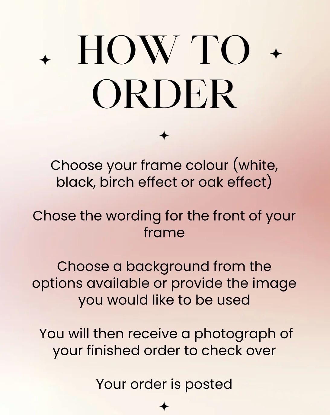 • When ordering, please choose your primary colour (frame colour) and the background design you would like.