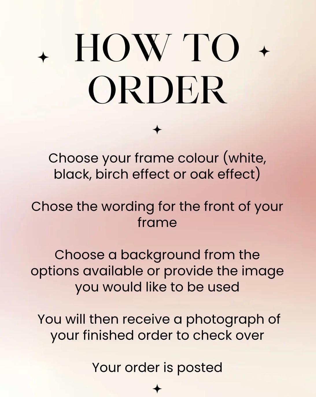 Design your own frame: Personalise with names, special messages and a printed background of your choice to make it truly your own.