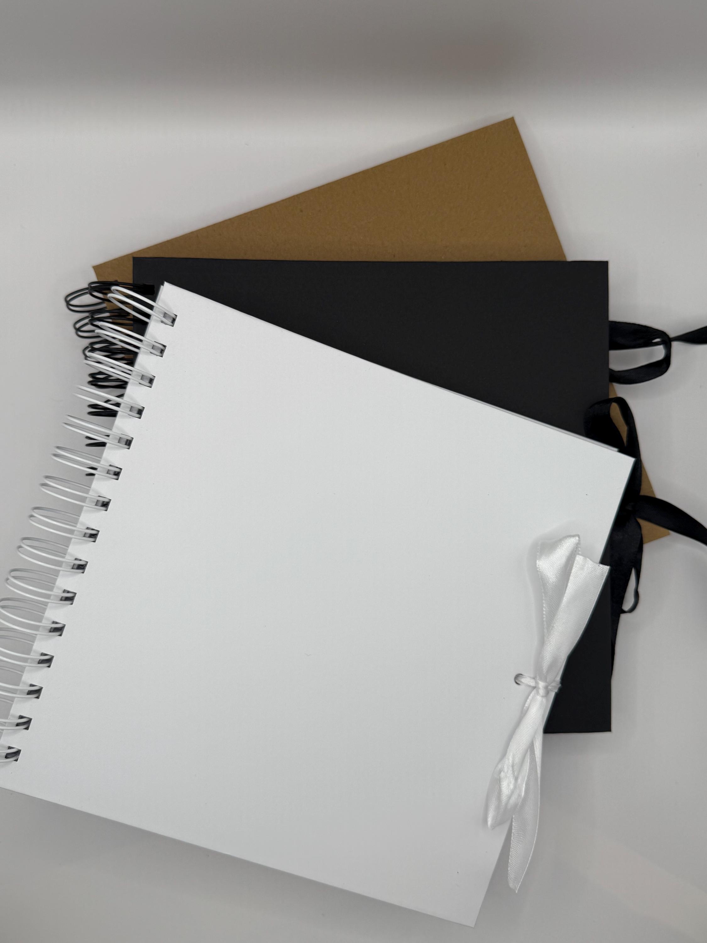 The other photos show the different colour books that are available for your design (black, white or brown).
