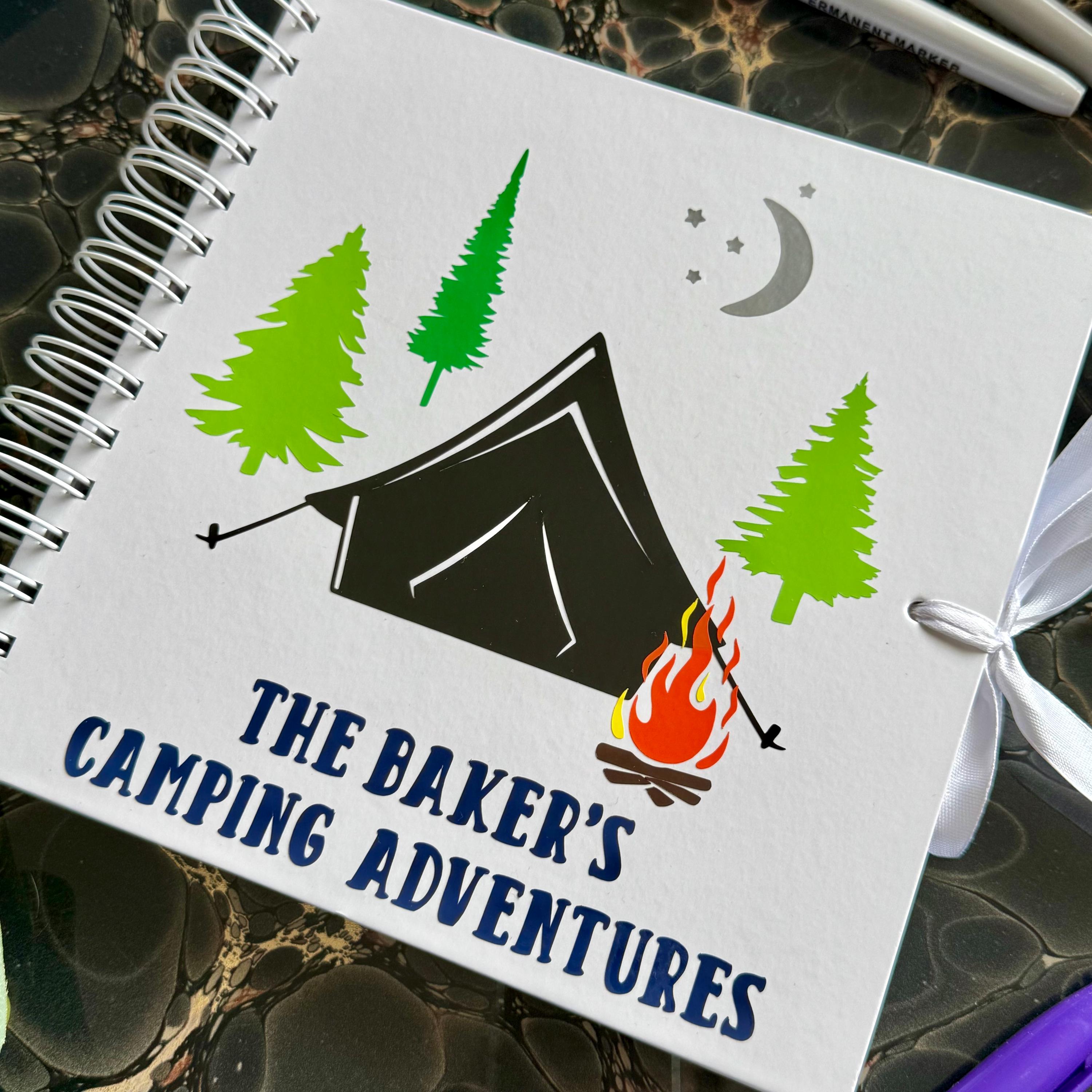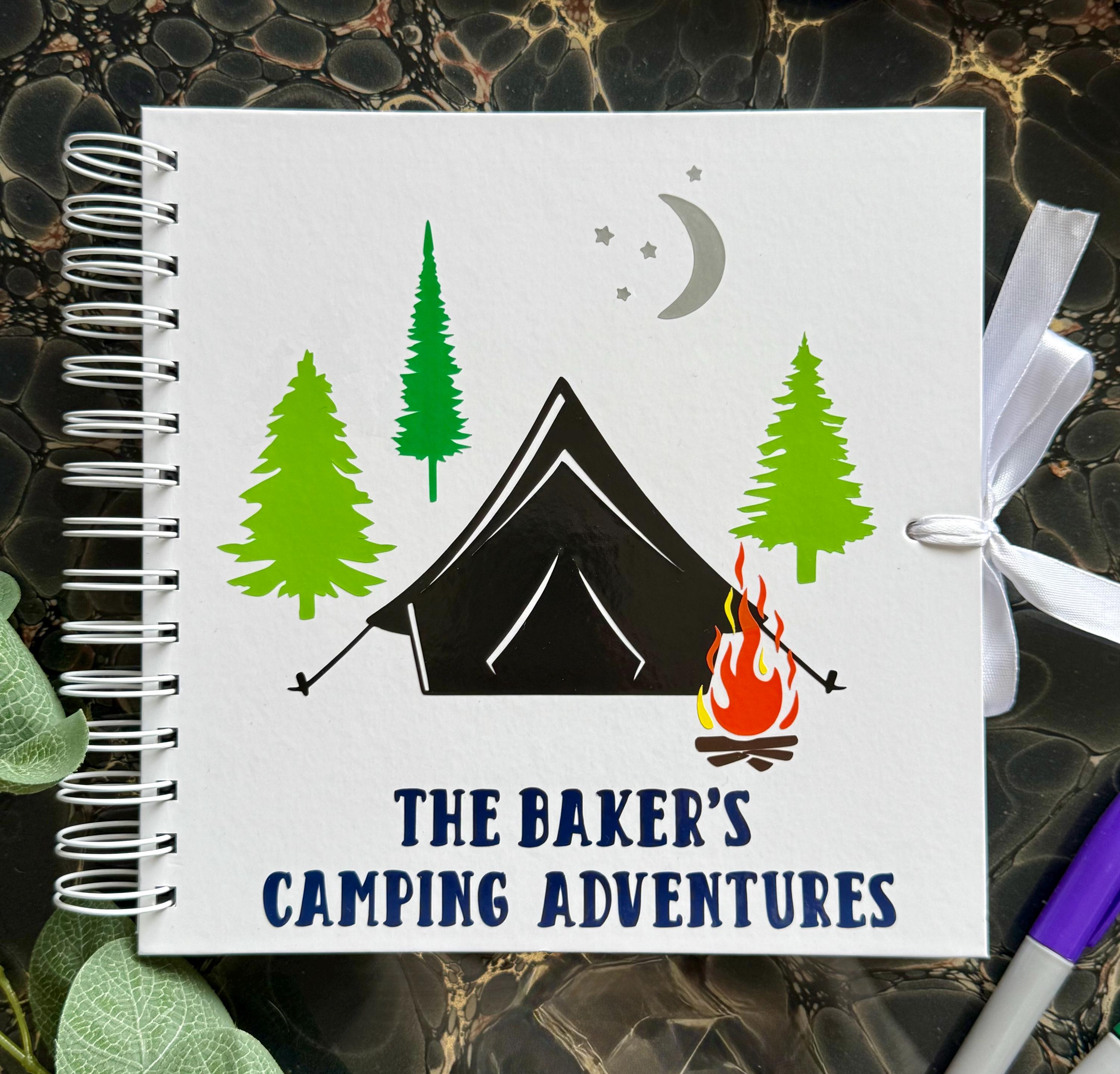 Create lasting memories of your camping adventures with this personalised camping scrapbook/photo album. Whether you’re exploring the great outdoors, enjoying nature, or setting up camp with family and friends, this custom memory book is the perfect place to store all your favourite photos and things collected on the adventure.