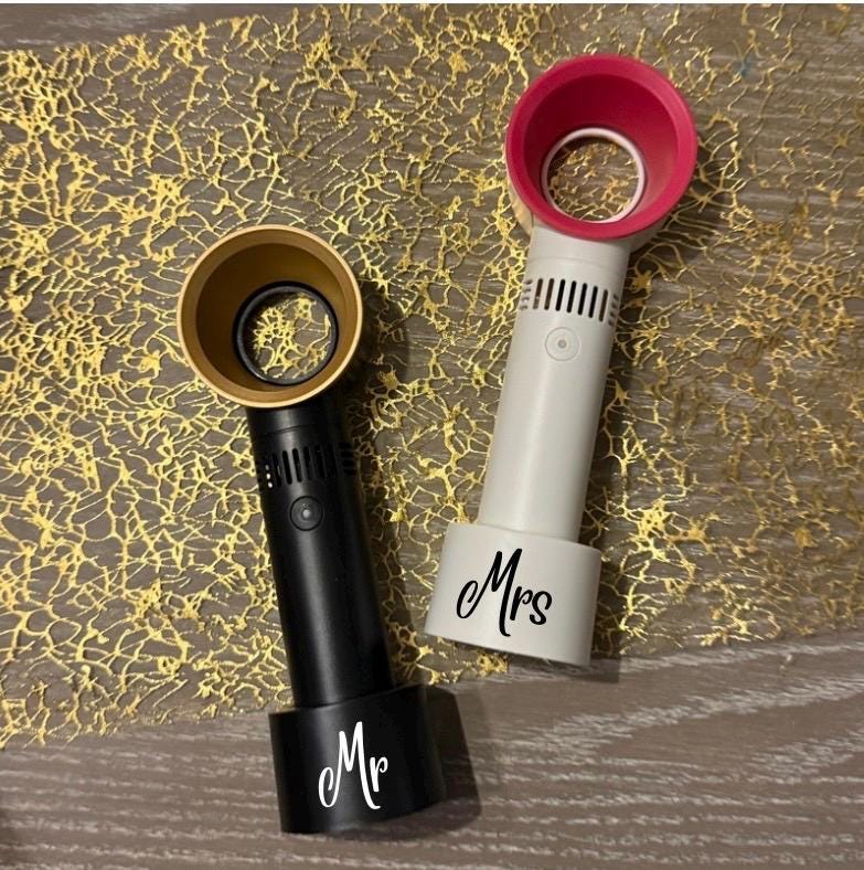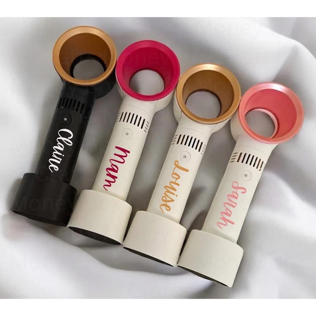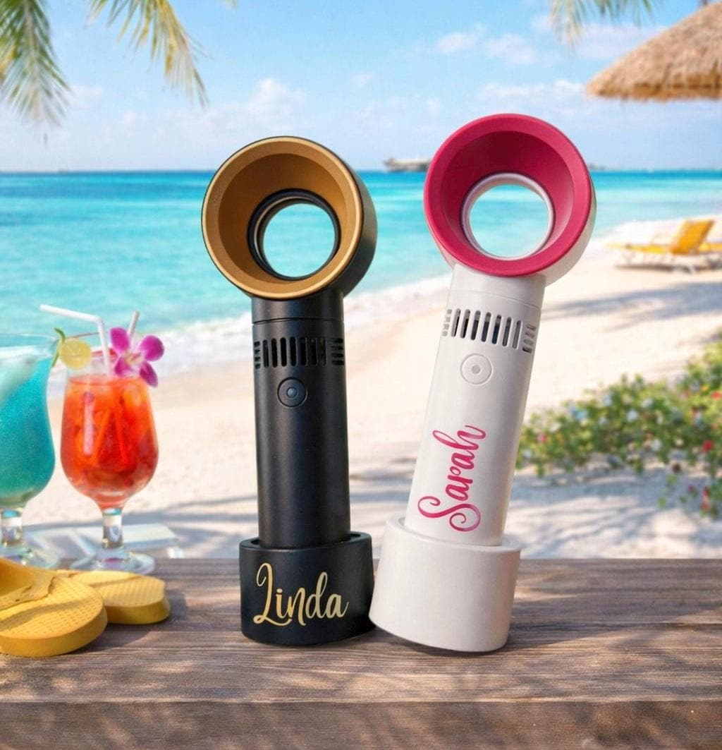 Stay cool in style with these personalised bladeless handheld USB fans, the perfect accessory for sunny adventures and special occasions. Lightweight, modern, and safe with a bladeless design, each fan is customised with a name, making it a thoughtful and practical gift.