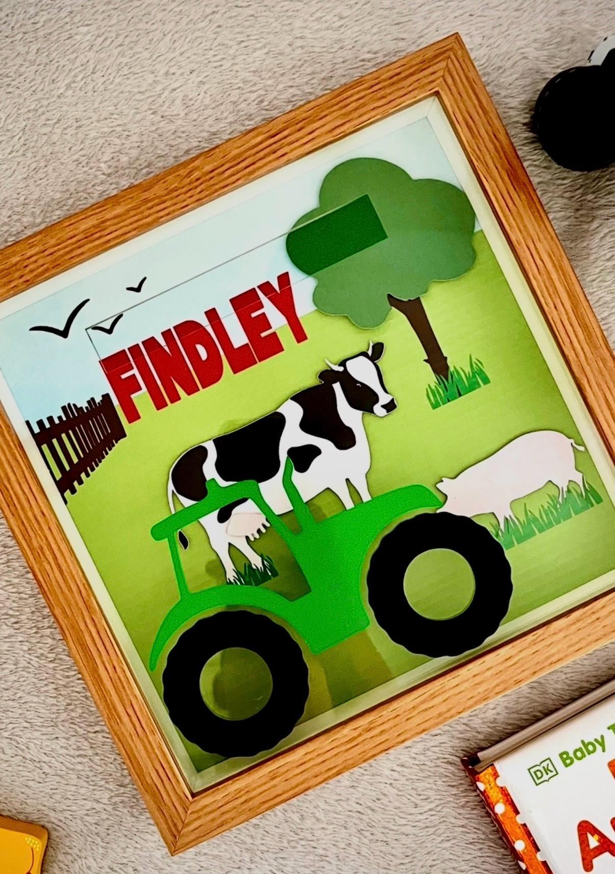 Featuring a colourful farm animal and tractor design and your child’s name personalised on the front, this money box frame is a lovely alternative to a traditional piggy bank and makes a thoughtful gift for babies, toddlers and young children.