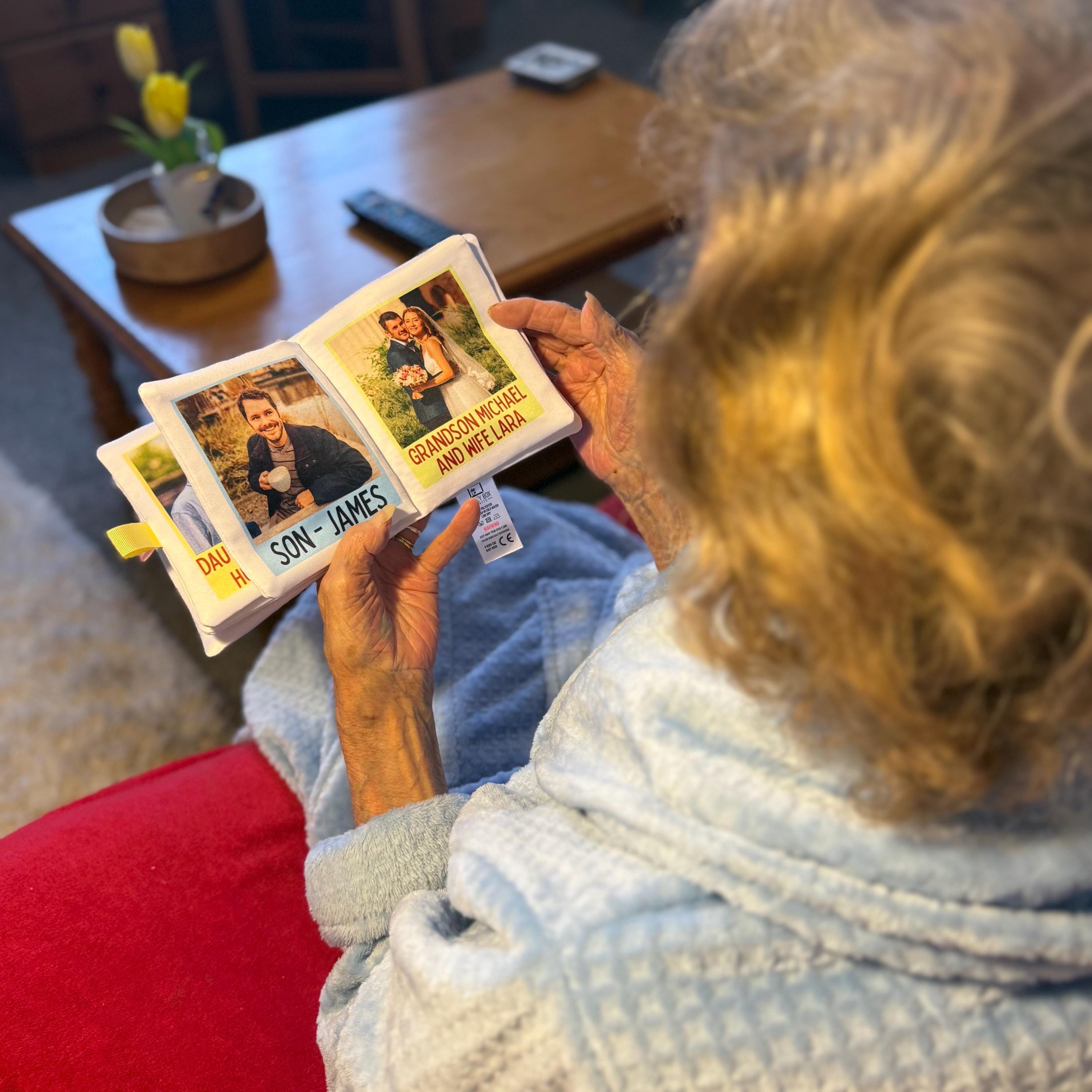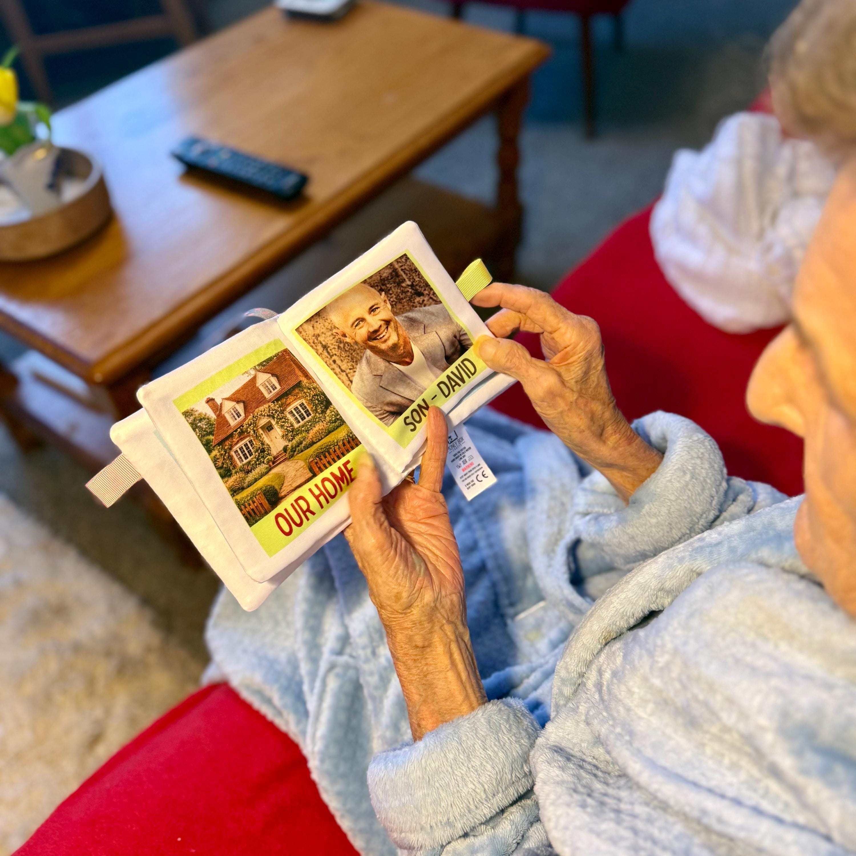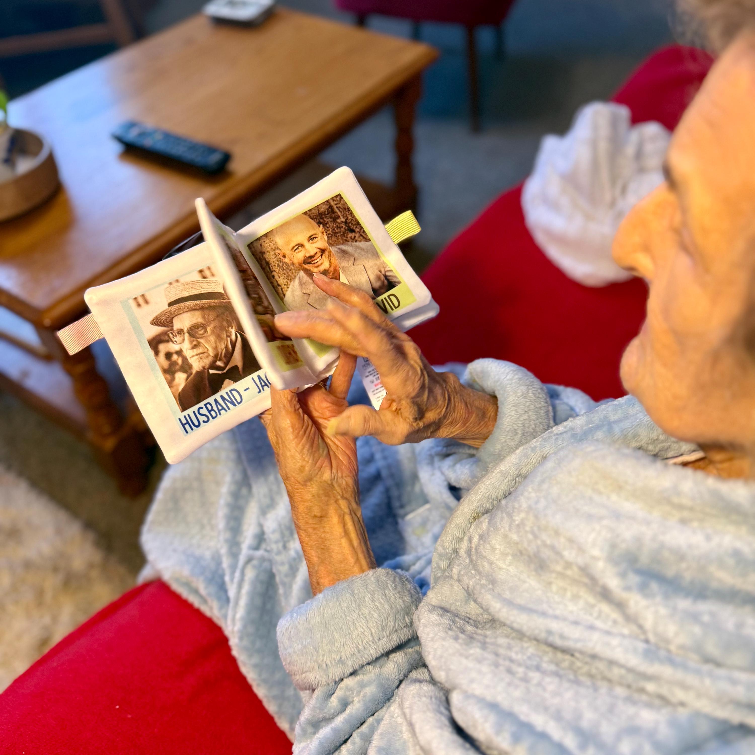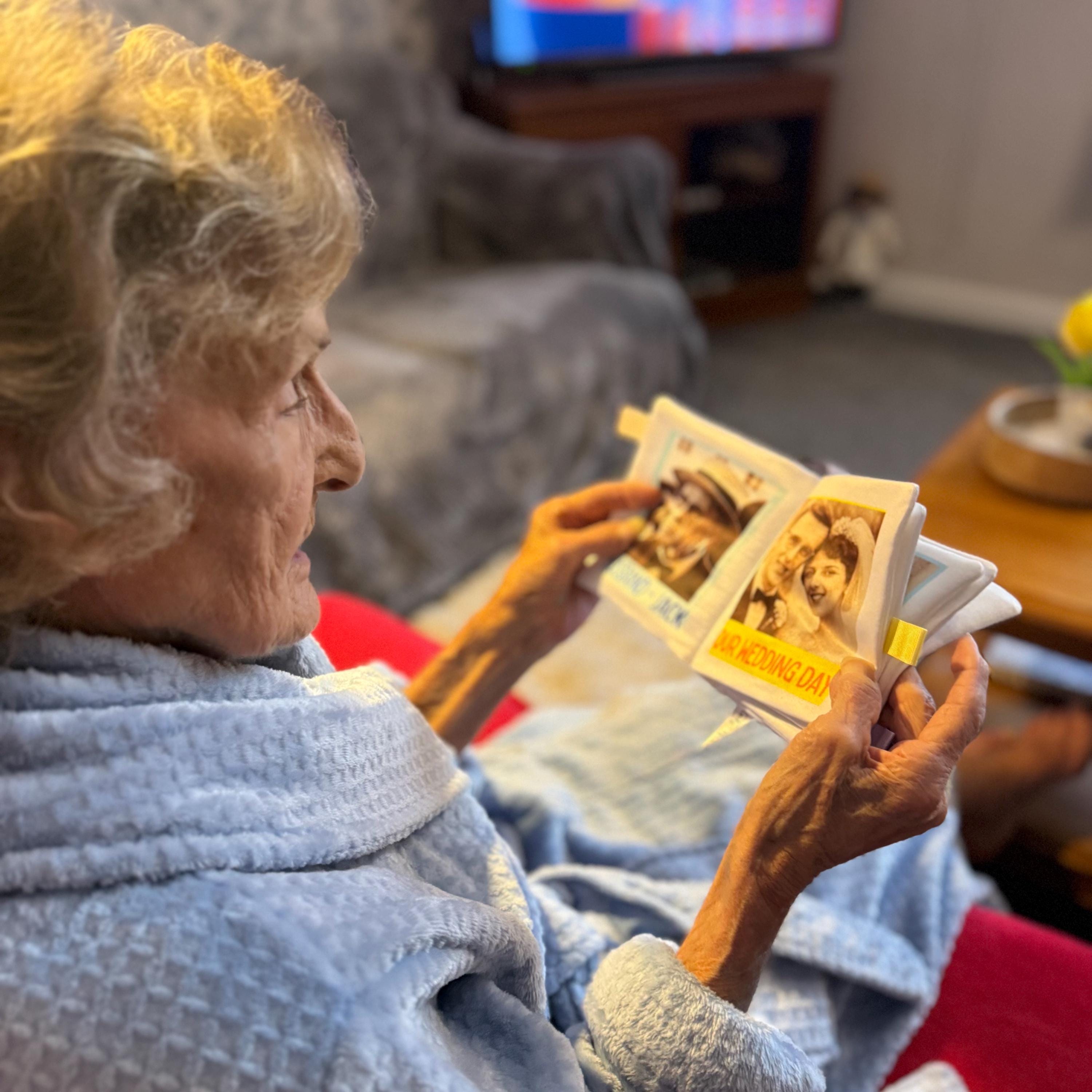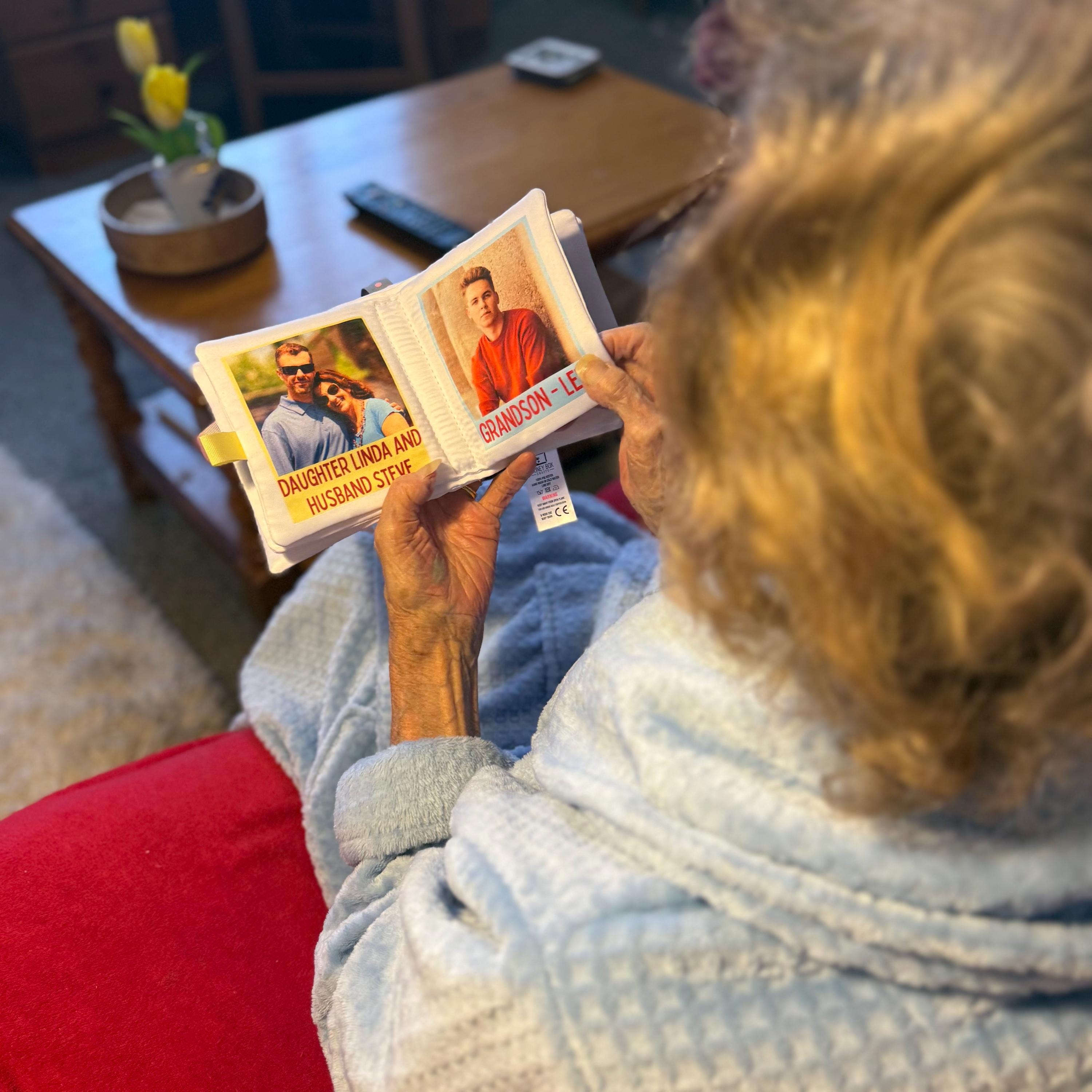 This soft fabric photo book is thoughtfully designed to provide comfort, familiarity and reassurance for someone living with dementia or memory loss. Filled with meaningful photos and simple captions, it creates a calming, personal connection to the people and moments they cherish most.